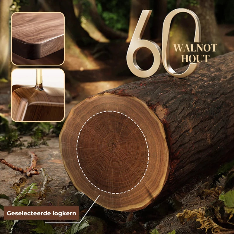 Gemaakt van FAS-gecertificeerd walnotenhout, afgewerkt met plantaardige wasolie voor blijvende schoonheid. Duurzame aluminiumlegering zorgt voor stevigheid en een gladde, glanzende afwerking - geen oneffenheden, geen geurtjes, alleen langdurige elegantie.
