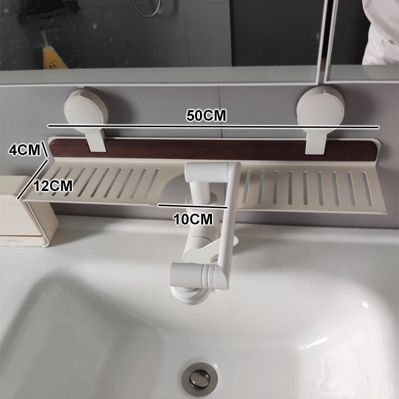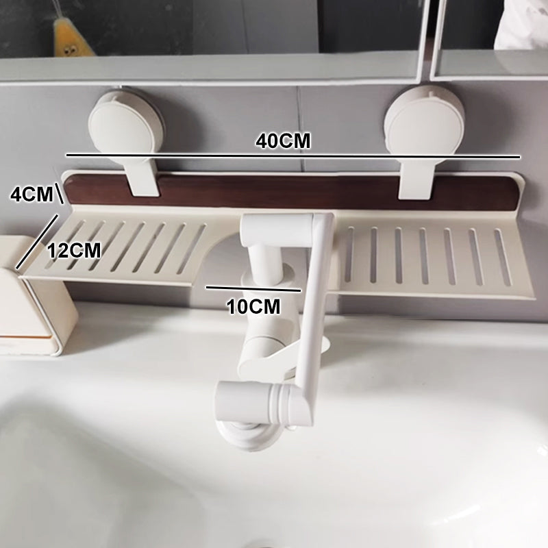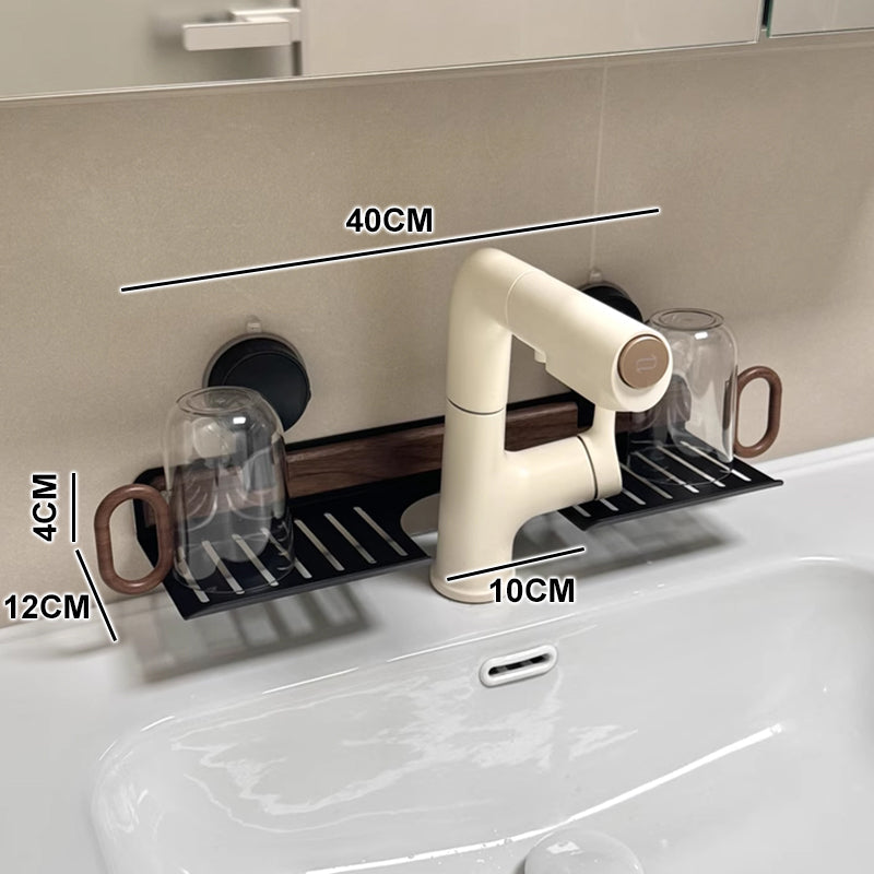 De bredere U-vormige gleuf past op de meeste kranen, terwijl het holle afvoersysteem voorkomt dat er water blijft staan. Verhoogde randen houden voorwerpen veilig op hun plaats en het slanke silhouet geeft elke badkamer een moderne uitstraling.