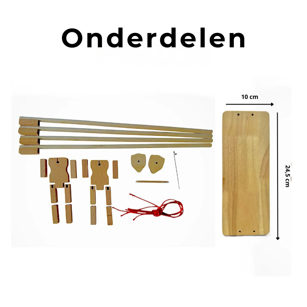 Bereid je voor op uren lachen en spanning! Deze houten poppen met ballonnenhoofd zijn het perfecte spel om reflexen en behendigheid te ontwikkelen en plezier te maken. Het doel: laat de ballon van de tegenstander knappen! Ideaal voor kinderen, neefjes en de hele familie!