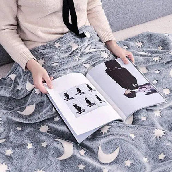 BLANKGLOW! Een magisch deken gemaakt van fosforescerende materialen die slapen naar een galactisch niveau tilt! Fosforescerende materialen geven 's nachts een rustgevende lichtgroene gloed af!