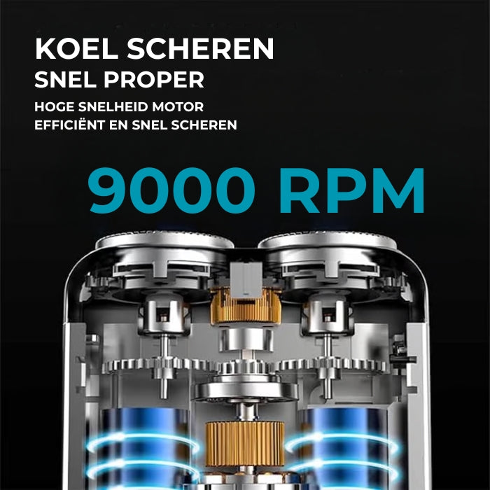 Stille motor met hoge snelheid: Pijnloos, geluidsarm, roterend en glad scheren wordt bereikt door een krachtige high-speed motor, die sterker is dan gewone elektrische scheerapparaten. Niet alleen efficiënt, maar ook stil zodat je van elk scheermoment kunt genieten.