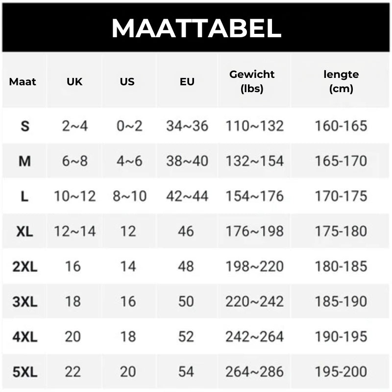 Maat: S, M, L, XL, 2XL, 3XL, 4XL, 5XL