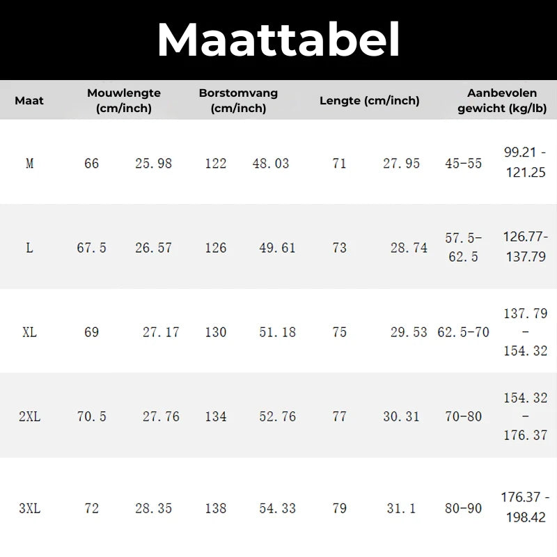 Controleer de maattabel voordat u bestelt, zodat u zeker bent van de juiste maat.