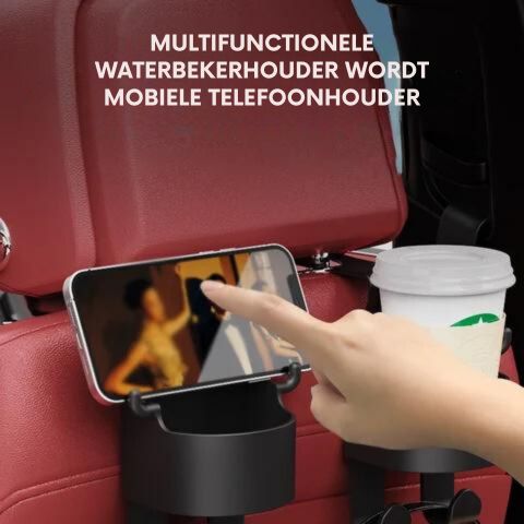 Multifunctioneel ontwerp:Deze bekerhouder is perfect voor lange-afstandsritten. Het kan even goed dienen als een telefoonhouder, om films te kijken of spelletjes te spelen. Het houdt de gsm goed vast, zodat u zich geen zorgen hoeft te maken, zelfs tijden scherpe bochten. Ook zijn er 2 haakjes vanonder om tassen, vuilniszakjes, etc aan vast te maken.