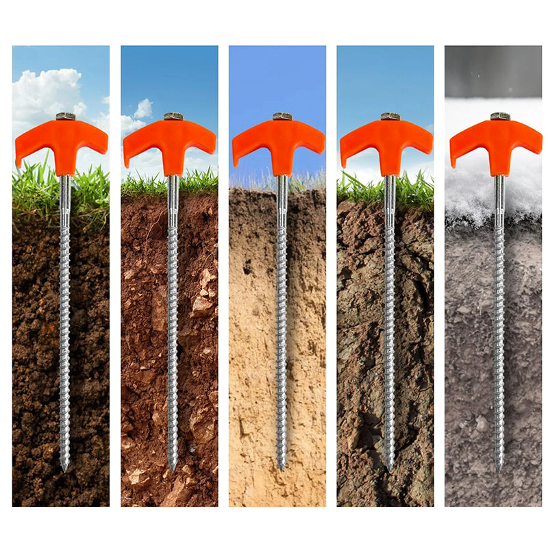 ⛺【DUURZAAM】Gemaakt van hoogwaardig staal met een draadeinde voor eenvoudig insteken en superieure grip bij het boren in verschillende harde oppervlakken. Gras, harde grond, grind of iets ertussenin - het houdt stevig vast.