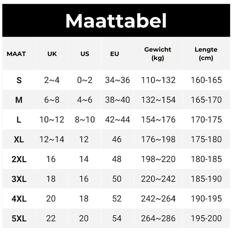 - Controleer de maattabel voordat u bestelt om de beste pasvorm te garanderen.